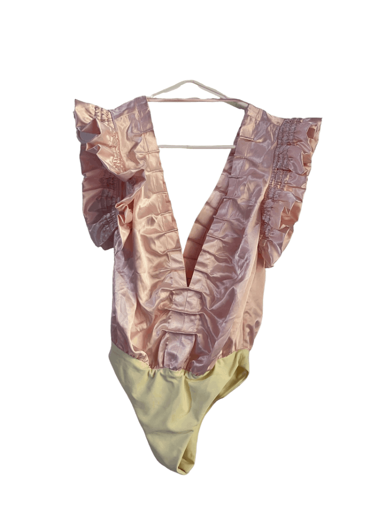 Body rosado con diseño ajustado y escote sutil. Marca Camila Isabel.