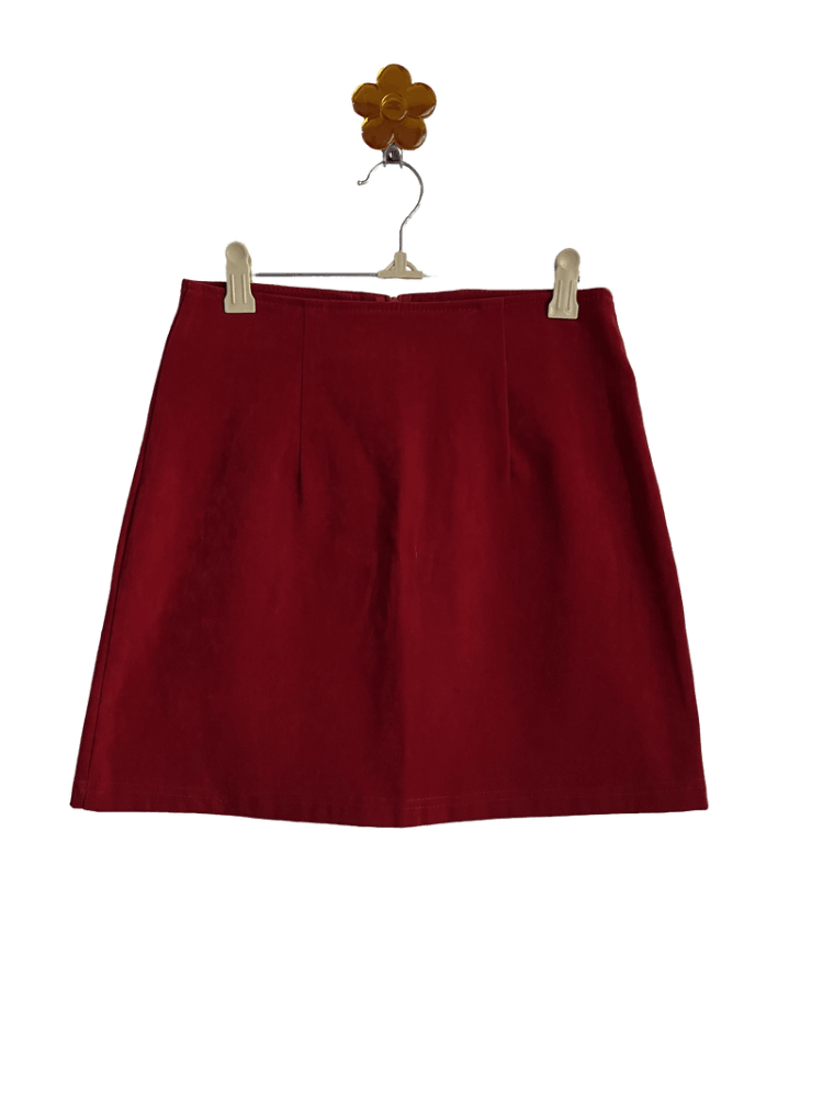 Falda alta de gamuza en color vinotinto. Estilo sofisticado.