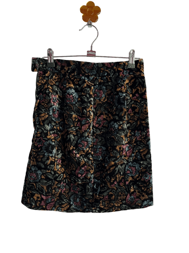Falda de gamuza decorada con bordado floral. Estilo romántico.