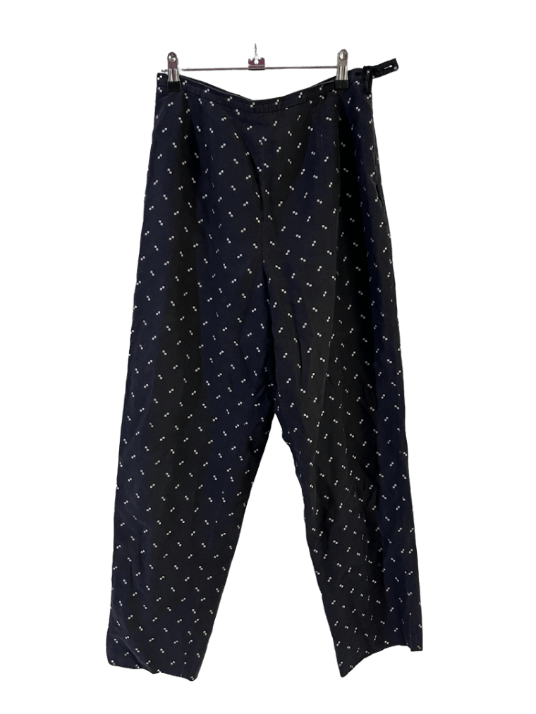 Pantalones azul con pequeños puntos blancos, divertidos y versátiles.